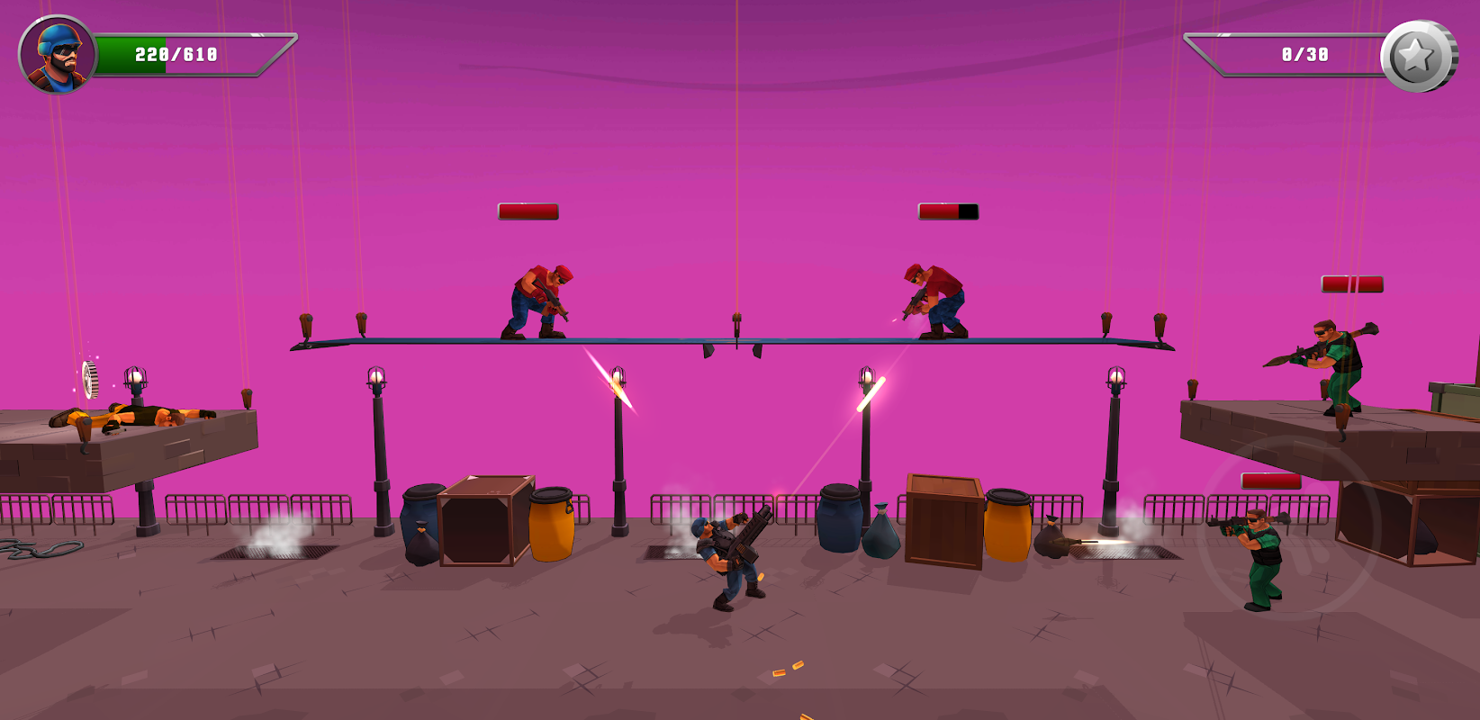 Gun Man is a side-scrolling 2D platformer combat shooter that combines gameplay with automatic shooting, players only need to navigate the character's movement, shooting is fully automatic