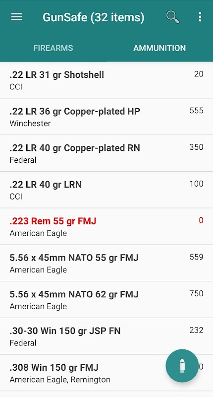Log your visits to the shooting range. Plan a trip to the range by adding the guns and the type and amount of ammo to your virtual range bag. When you return from the range, specify the amount of unused ammo you brought back and, optionally, number of rounds fired from each firearm. The app will automatically reduce your inventory by the amount you fired and record the info to the range log as well as the individual firearm log.