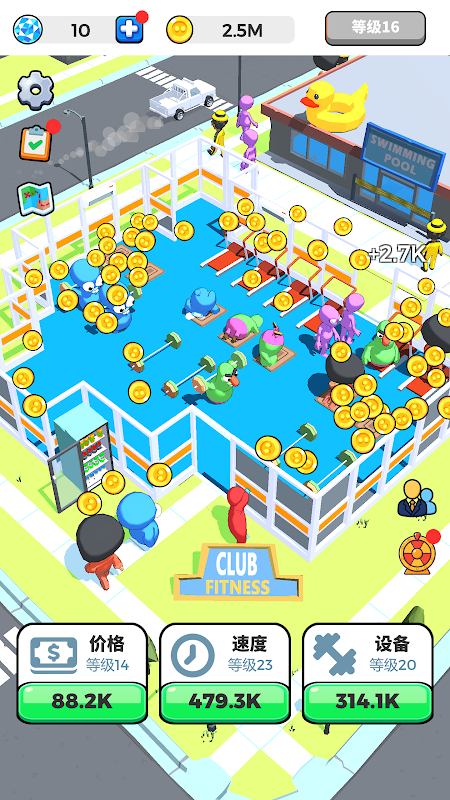 Open new gyms in different locations to reach even more unique customers. With each new map, you’ll encounter new challenges and rewards, making your gym empire grow faster!