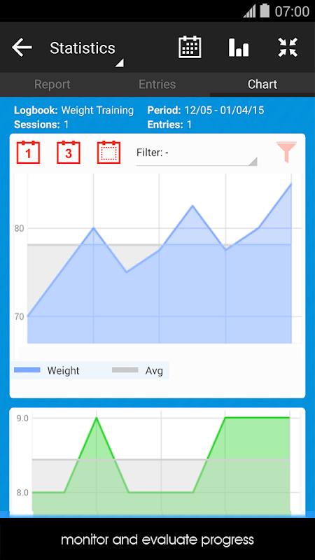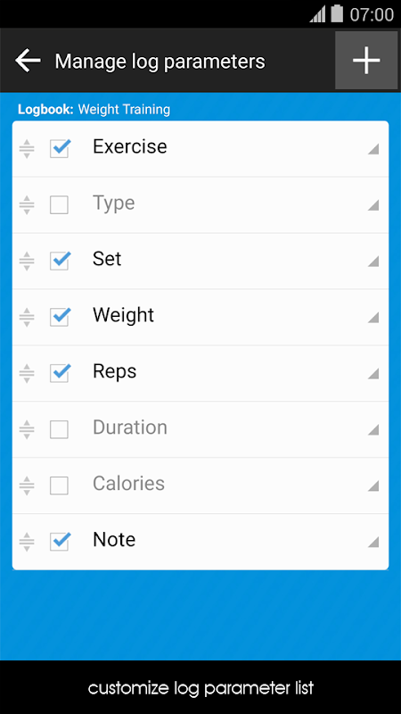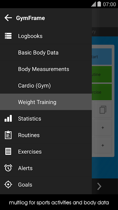 * use severals built-in logbook templates for weight training, bodybuilding, cardio, body measurements, etc.