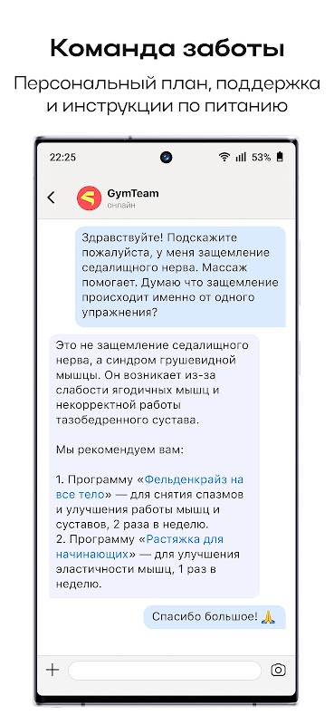 Спасибо, что помогаете нам улучшать GymTeam! Рассказывайте, — что вы думаете? Откройте приложение и выберите в профиле раздел "Обратная связь", чтобы связаться с командой поддержки, или напишите по адресу [email protected]