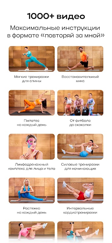 — Workouts from 10 minutes to full-fledged programs for 2–3 months — choose your own pace