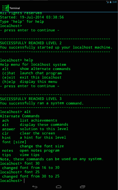 Stuck on a level? Just use the 'hint' or 'answer' commands to help you along.