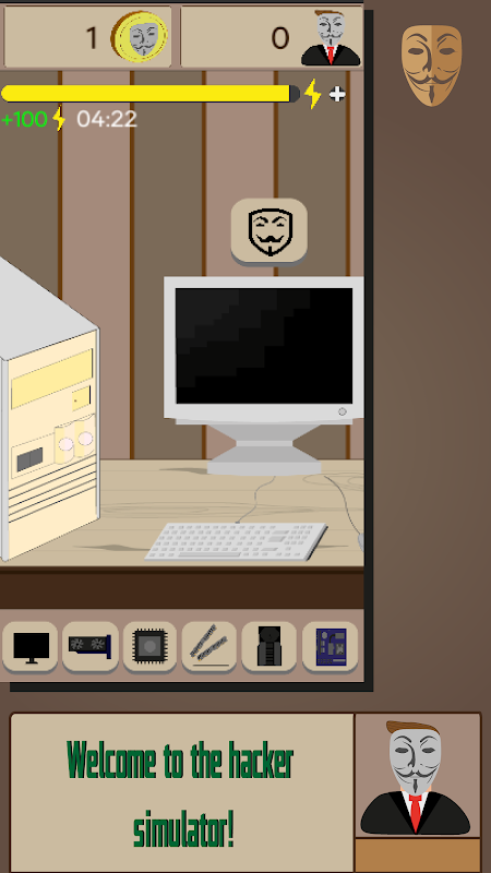 Welcome to the hacker simulator, here you have to stay in the role of a hacker and move up the career ladder of hackers in the world.