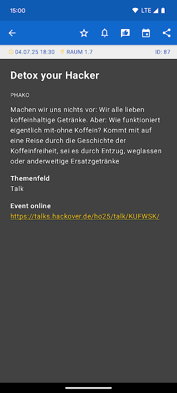 The program for the hackover from July 4th to 6th, 2025 on your Android device.