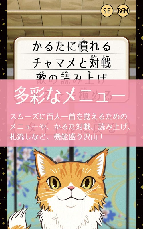 アプリの猫キャラを相手に、全首、札を取れたら、ミッション、クリアです。