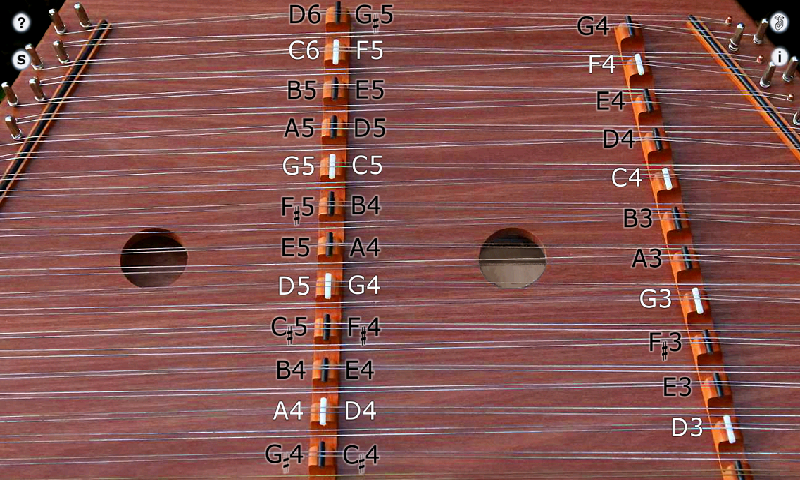 The real instrument is played with two small wooden hammers that are used to strike the strings. The app works exactly the same way, except using your fingers.