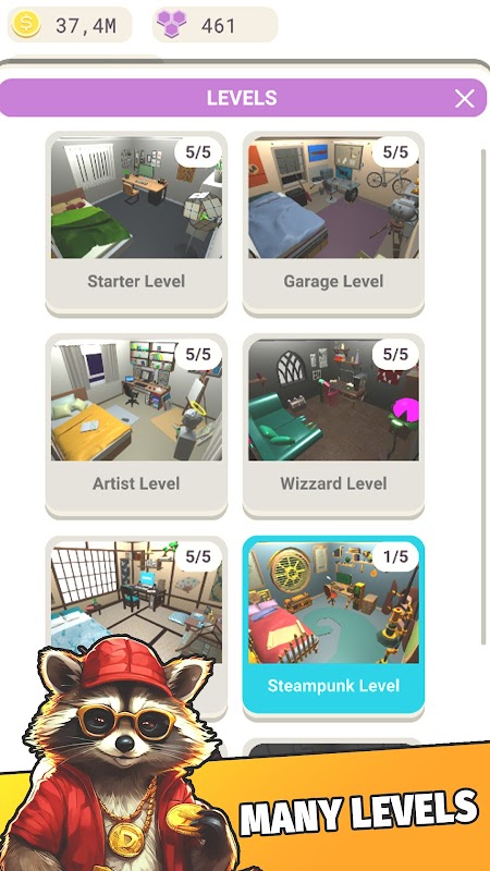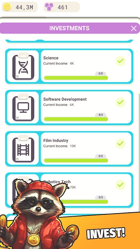- Join the cryptocurrency raccoon in his adventures! Become a true tapping master and develop your room to unprecedented heights.