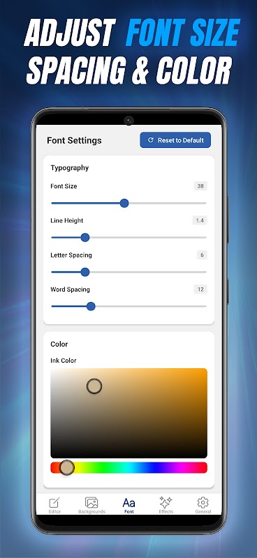Fine-tune font size, ink color, line height, letter spacing, word spacing, margins, and layout. Add paper texture, shading, shadow, blur, and other handwriting effects to create realistic handwritten notes and realistic handwritten assignments that look polished and natural.