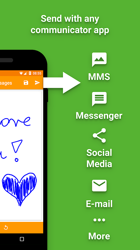 Surprise your friends with original, unique and personally handwritten messages. Send from any SMS (MMS), messenger, social media or e-mail app you prefer, using this great tool. Write a text, draw a sketch, a piece of art or create whatever you like.