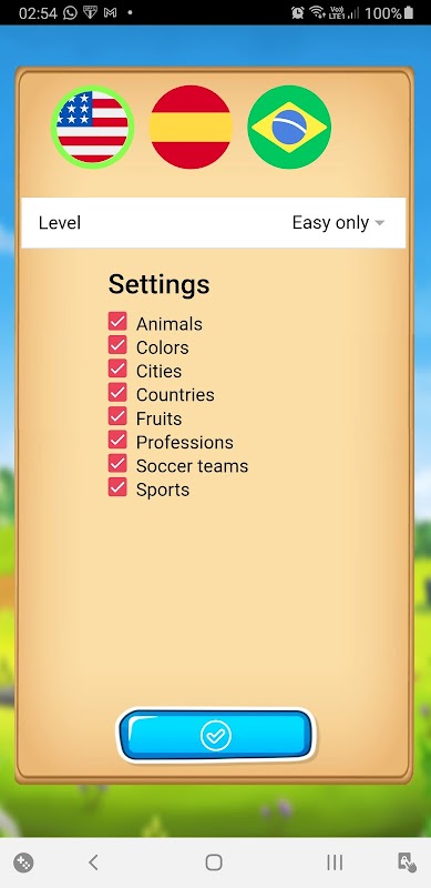 The game works like this: a secret word of a certain category is selected at random and the player chooses, between vowels and consonants, a candidate letter. The secret word is hidden and the player only knows the number of letters in it. There is a simplified drawing of a doll, consisting of 6 parts: head, torso, arms and legs. With each hit of the player, the corresponding letter of the word is revealed. With each mistake, a part of the doll is revealed. The goal of the game is to discover the secret word before the hangman is fully shown.