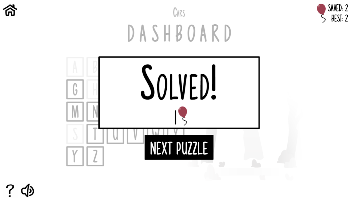 You can guess a letter by clicking it. You'll score points for each correct letter you guess, and if you solve the word, you score for how fast you get it and how many balloons you had left. Get the highest total score after 5 rounds to win the game and earn a trophy!