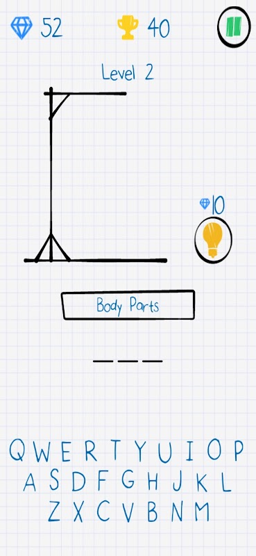Enjoy the hangman game on your mobile or tablet! This gallow classic game is suitable for all ages, especially for those adults who want to practice their language skills and vocabulary or kids learning new words. The classic hangman for your device. Play the game with the stickman.