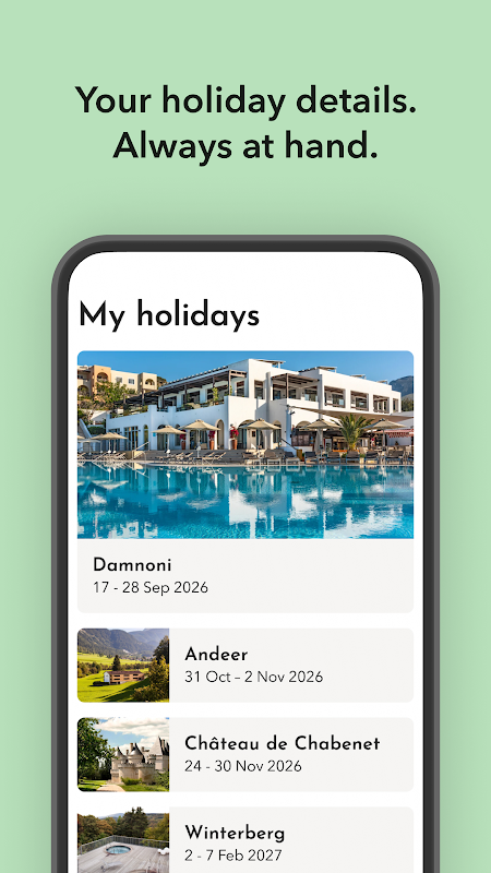 This app is your central source of information for your stay. Plan your activities, discover local recommendations, and access all important resort details in one place. Designed for clarity and ease of use, our app ensures you have everything you need for a well-organised and memorable holiday.