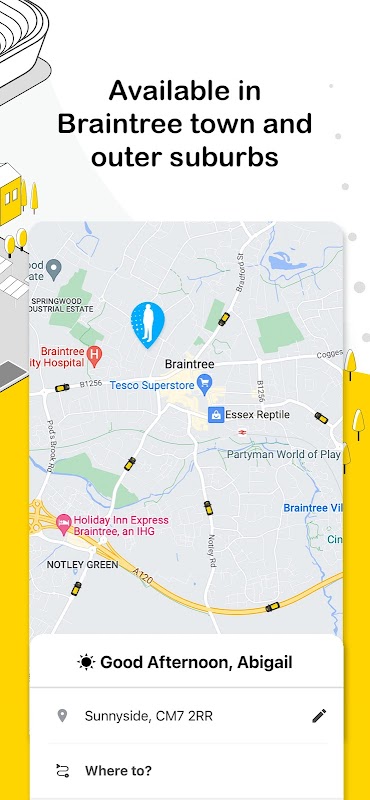 • Faster response times. Get picked up in minutes by a nearby Happicab taxi in Braintree.