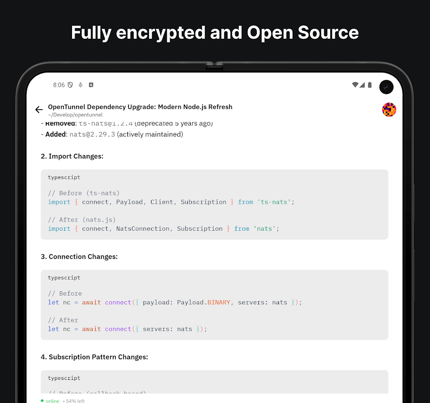 Happy Coder uses the same encryption as Signal (TweetNaCl) and is completely open source. Your encryption keys never leave your device, and all data is encrypted before transmission.