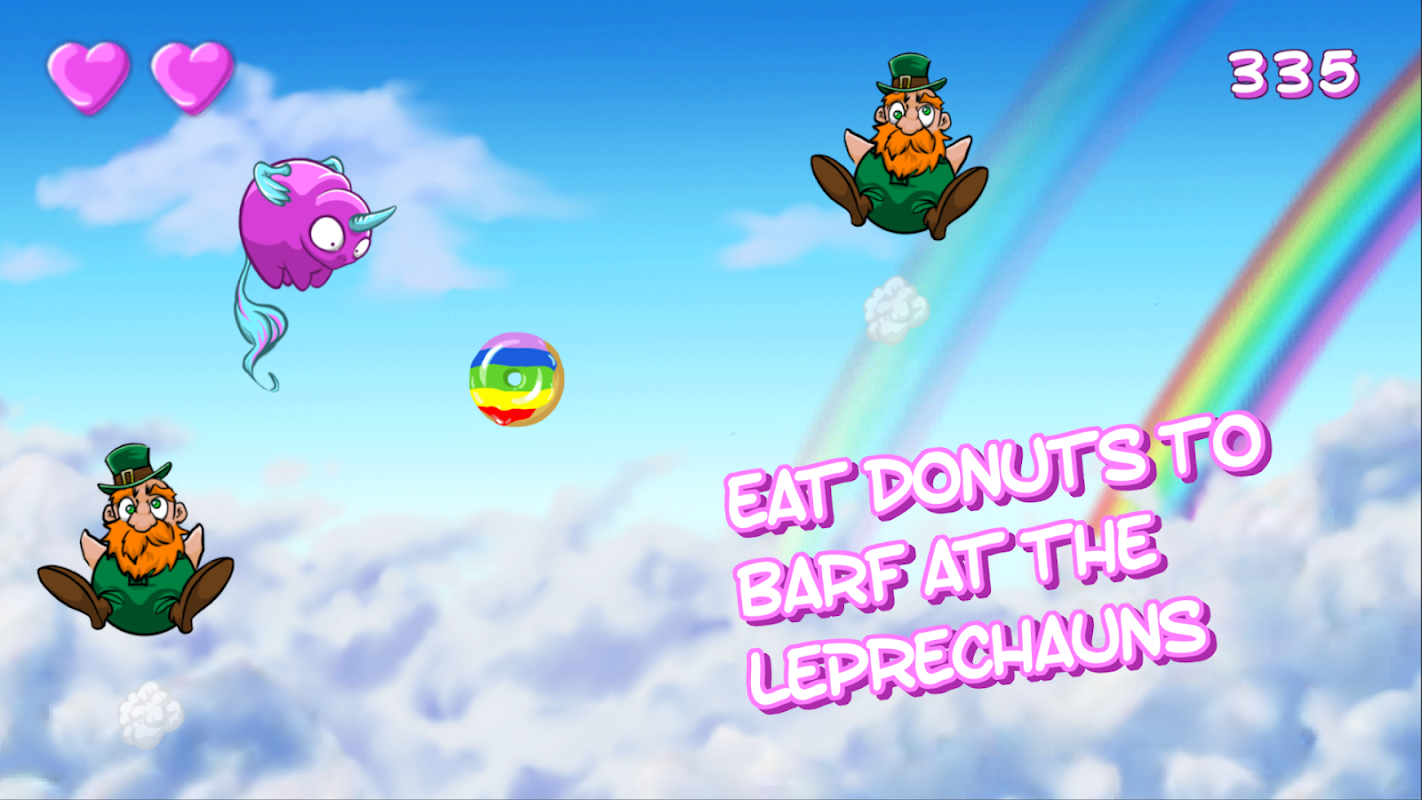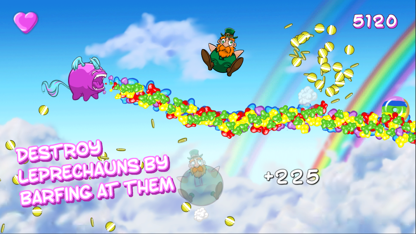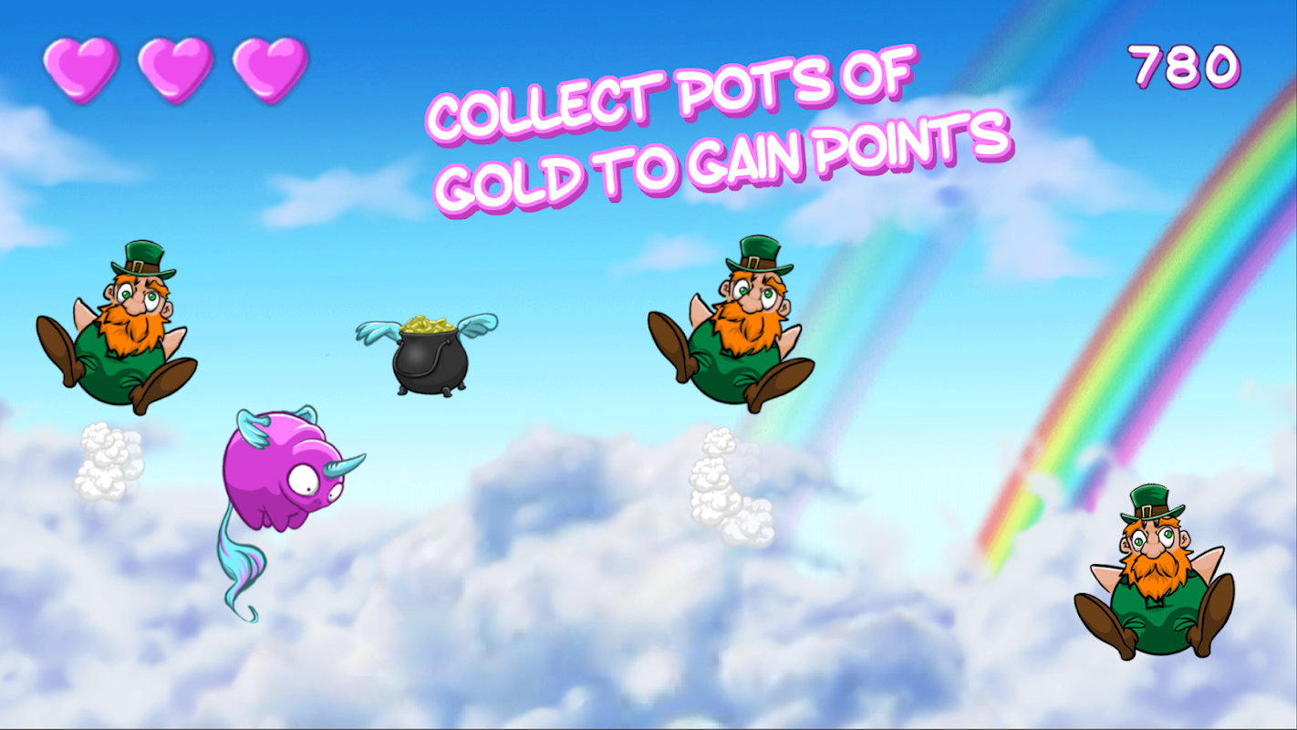 Soar through the sky as a unicorn while avoiding leprechauns.