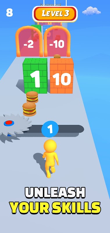 Strategically eat Burgers & Protect Yourself from Obstacles for victory!