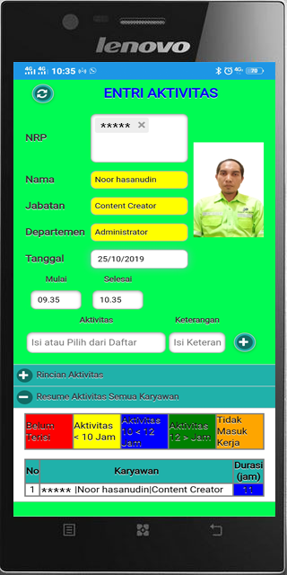 - Isi Rincian Aktivitas (Ketik atau Pilih dari daftar aktivitas)