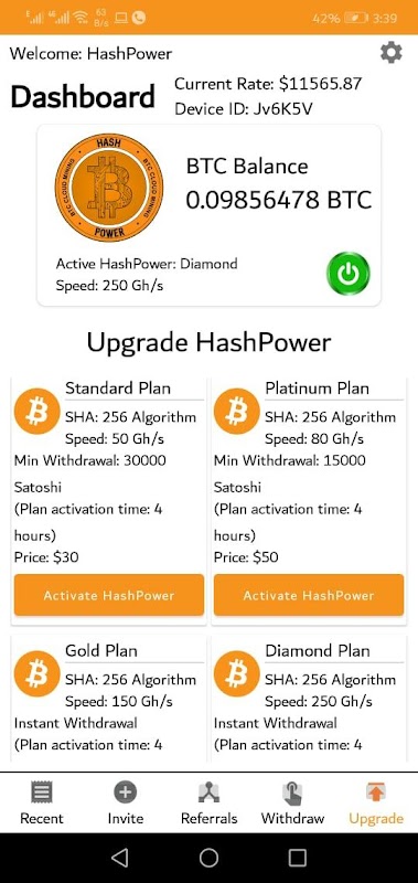 You can also Upgrade a Plan for a good profit, start mining and get daily returns using our cloud mining service. We are providing the best plans among the competitors within average investment because this is an earning opportunity for all the people either they are rich or destitute. Passive earning is every person's dream.