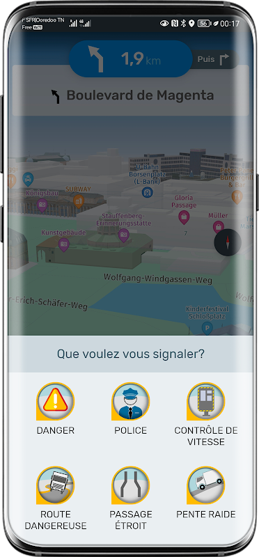 - Reception of obstacles detected by the radar and display of the corresponding alerts in the application.