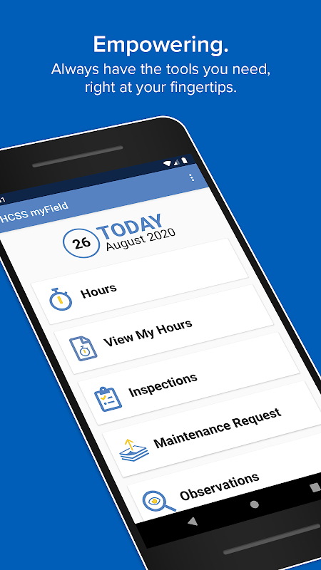 💪 Empower crew members with a smart app that keeps all the right tools at their fingertips. Designed to run on each member’s own mobile device, HCSS myField is perfect for operators, laborers, flaggers, truck drivers, and craftsmen in heavy civil construction.
