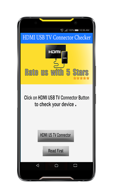 HDMI USB Connector : makes it very easy to check whether your phone is compatible with USB HDMI devices. This application can help you check your device have support HDMI or OTG connection quickly by one click