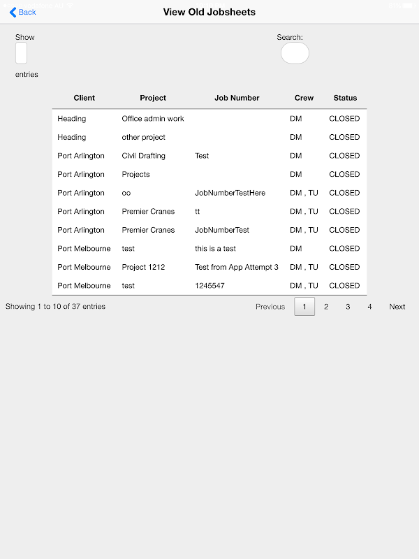 Internal Application for Heading & Associates - Job Sheets & Time Sheets