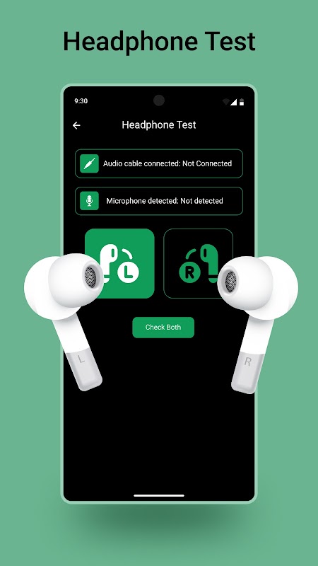 🎧 This app is the ultimate tool for testing your headphones or earbuds — check sound quality, battery level, audio delay, stereo balance, and frequency response with ease.