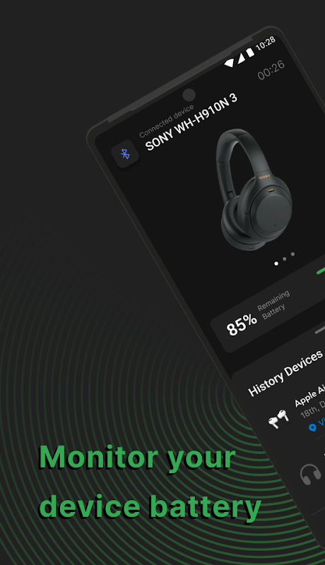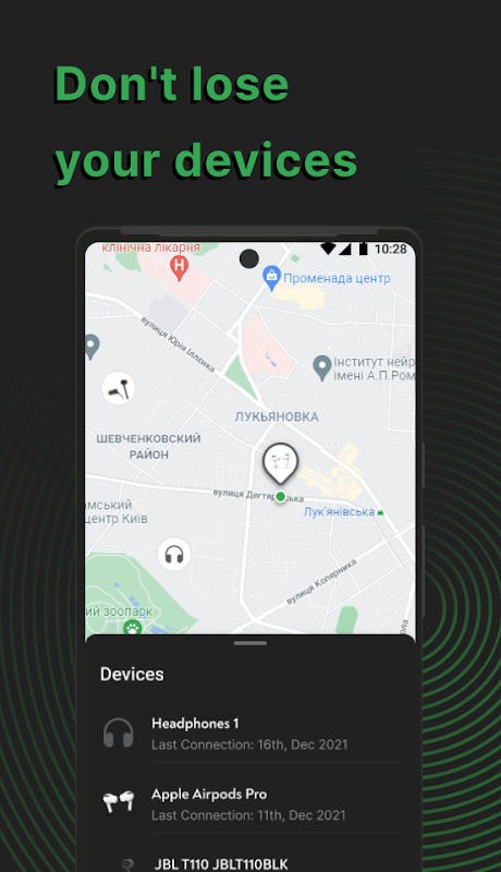 Don’t know where have you left your headphones? No problem! With the last location feature you will always know about the last connected/disconnected event place on the map.