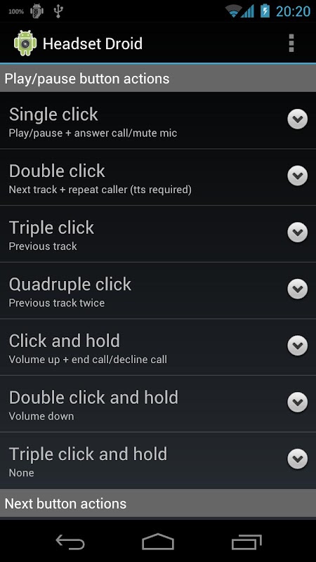 * Turn on 'Headset (with mic) only' or 'Ignore system clicks' to selectively execute button actions.