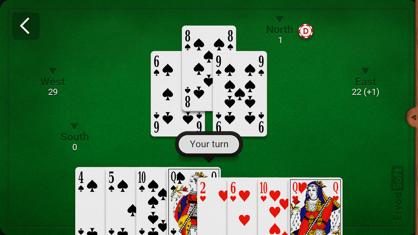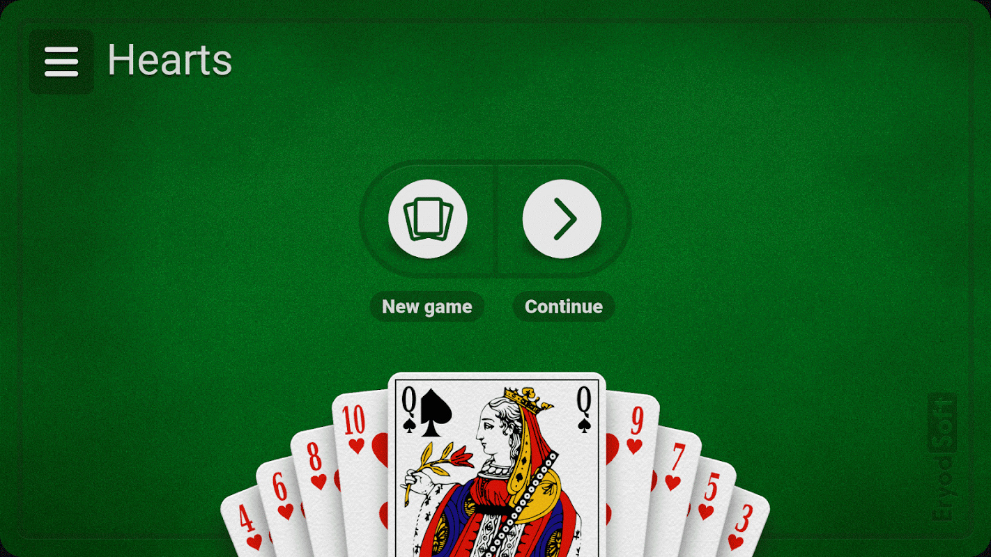 Play the famous game of Hearts against opponents simulated by advanced artificial intelligence.
