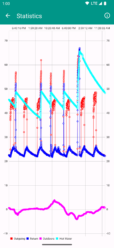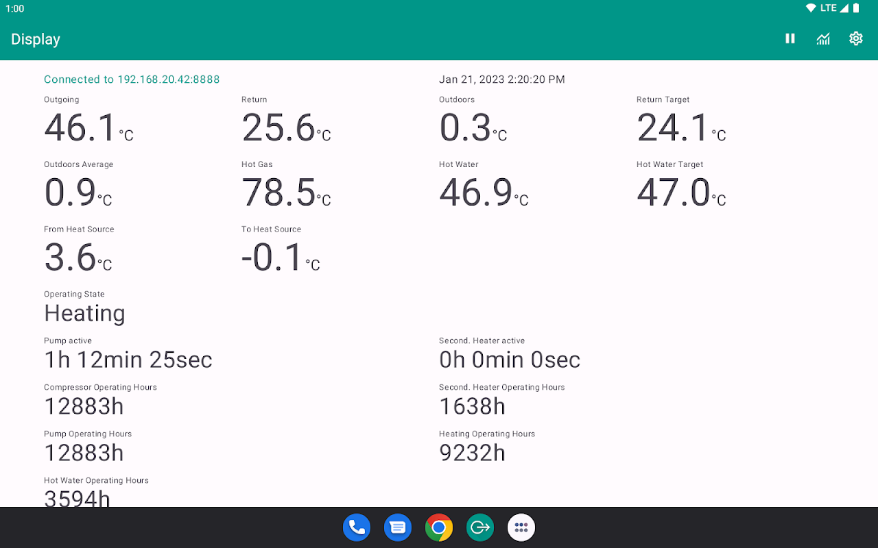 Display temperature and status of Luxtronik 2.0 heat pump, heating and water