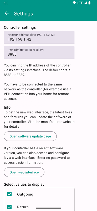 You can currently only display values, not change settings.