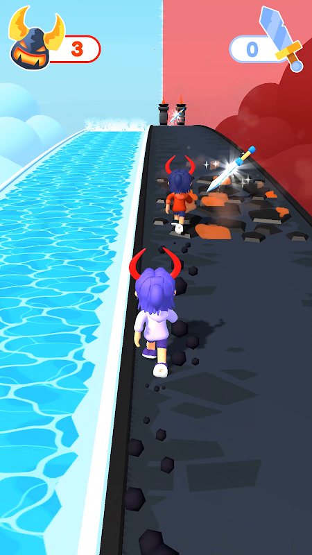Take part in the most unusual runner! Run to the finish line with other players. Collect swords on the way to defeat the boss after the finish. Avoid land obstacles and water waves. Show who is number one here!