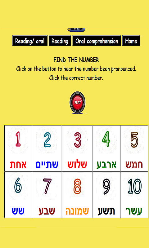 - Click on the pictures and hear the numbers pronounced by a native Hebrew speaker.