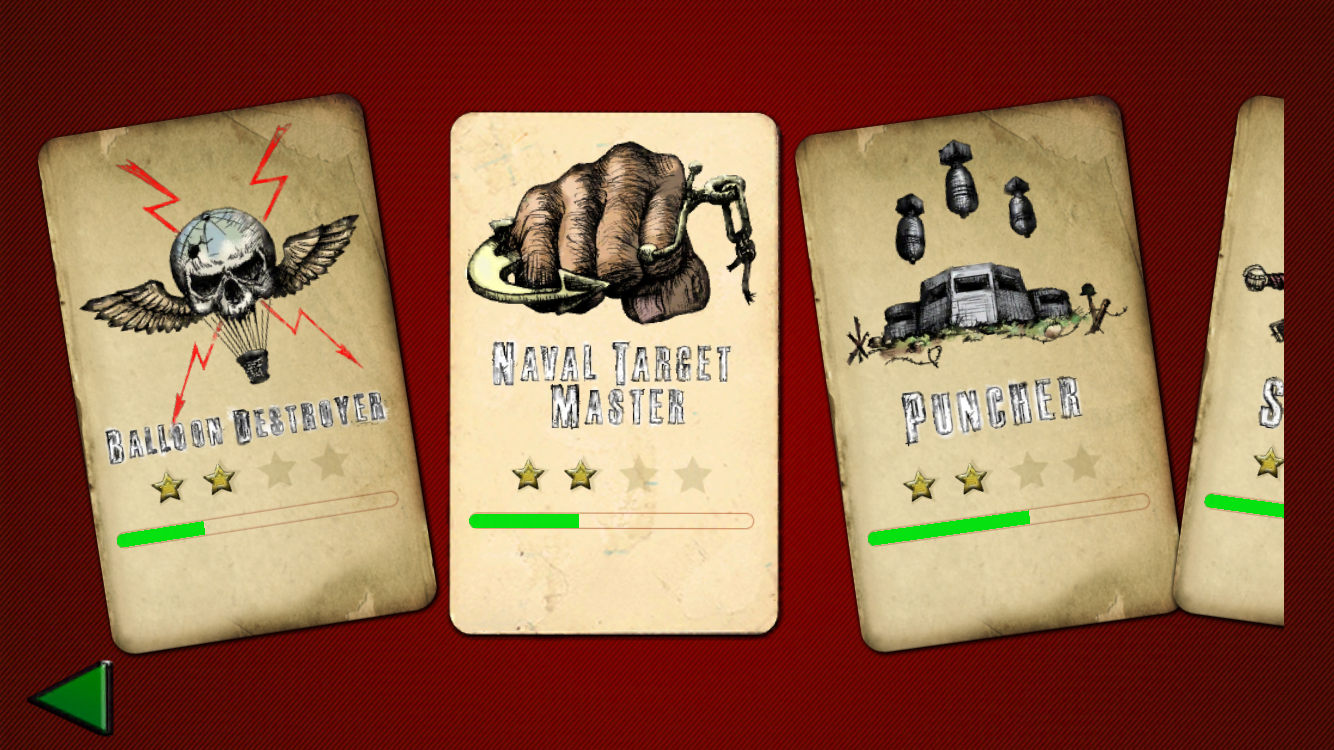 Armed observers, barrage balloons, blimps of all kinds, cannons, concrete pillboxes, firing points, tanks, gunboats, armored boats, fighters, interceptors, minesweepers, and many more enemies. Unlock achievements and reach unique enemies before you are destroyed by enemy fire or run out of fuel.