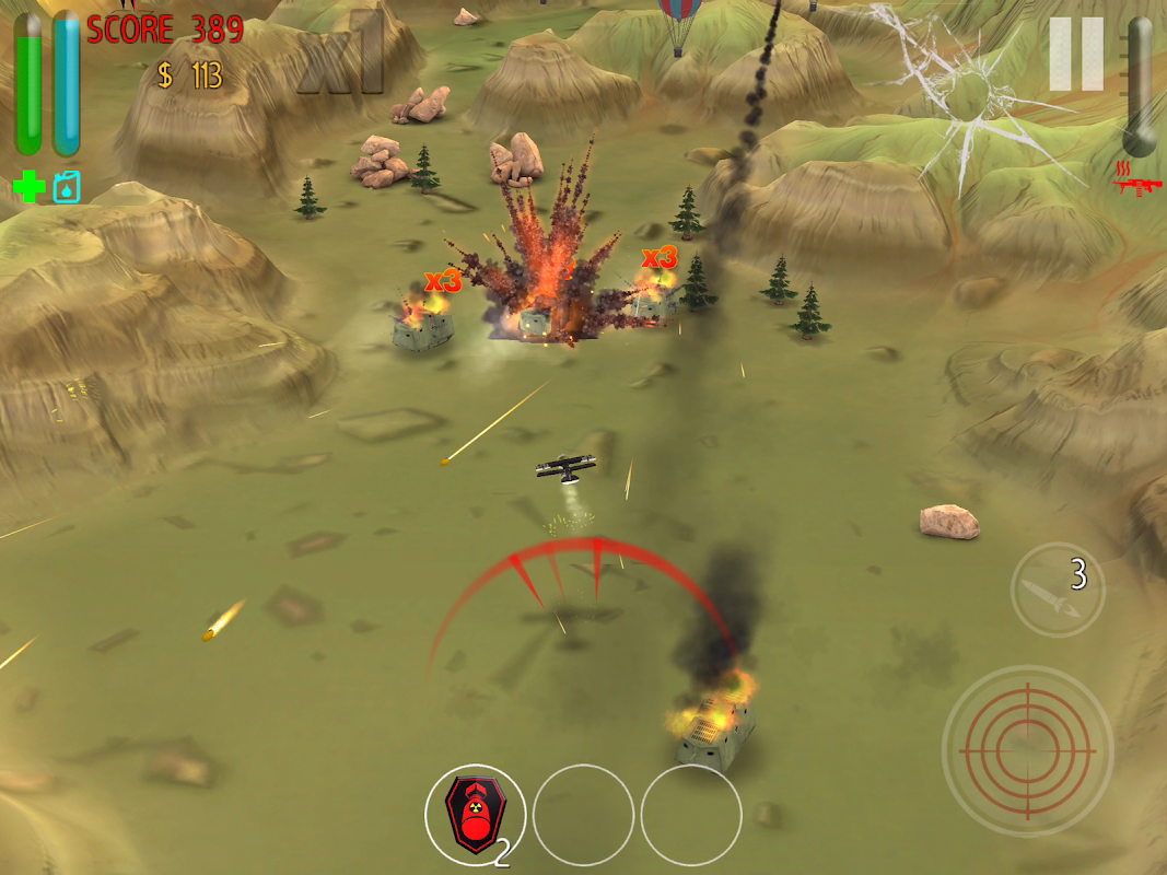 Go raid! Destroy enemy gunboats, pillboxes, balloons, tanks and airships.