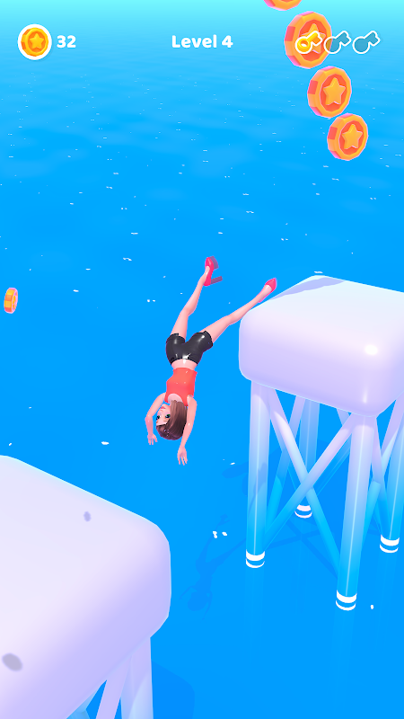Stretch your heels so that you can go on the other platform. Watch out! If your heels is unexpected long or not long enough, you are going to fall down.