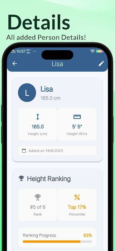 Create and save multiple profiles with names, images, and accurate height data for future comparisons.