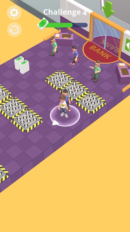 Try yourself in a crazy bank robbery challenge! Get your team, go through all the obstacles, get rid of the security, and take the money!
