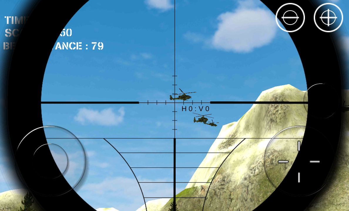 You have superior featured sniper riffle. Shoot down enemy helicopters. If you defend your military base within 60 seconds will help you come to support forces.