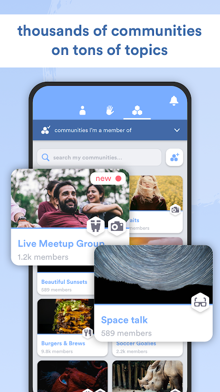 - Build lasting connections by following communities and meeting new friends over time.