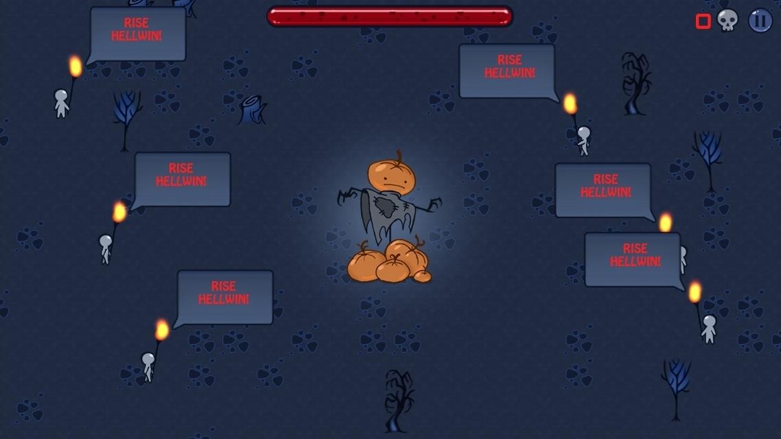Mysterious sect burned harmless scarecrow named Hellvin to summon infernal powers. And they answered the call, instilling in pumpkin head Hellvina! Try yourself in the role of devil's pumpkin. This whole night is dedicated to satisfy his hunger.