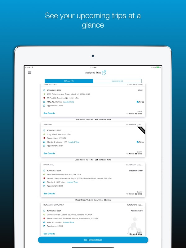 Increase the reliability and flexibility of your NEMT service. With up-to-minute information about trips assignment and operational updates from the central dispatch system, you can view detailed information, including special needs of patients, all at the comfort of your mobile device.