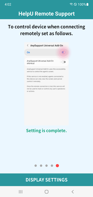 A universal add-on app for using HelpU Remote Support. This app is not a standalone app, and depending on whether the device is supported, customers must install this app to use the 'HelpU Remote Support' app.