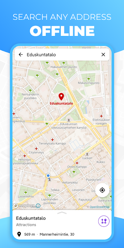 With zMap free offline map and navigator for Helsinki it's super easy to find any destination and route in Helsinki. It's very fast, simple and does not require Internet connection!
