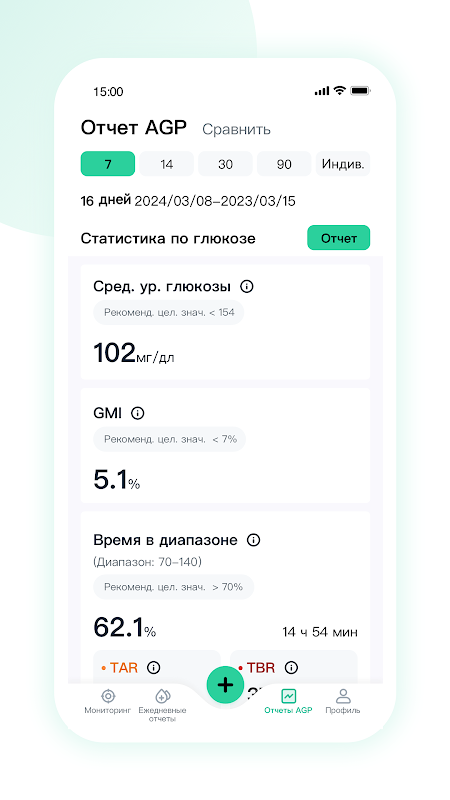 - Create personalized reports to review therapy, meals, and activity impact