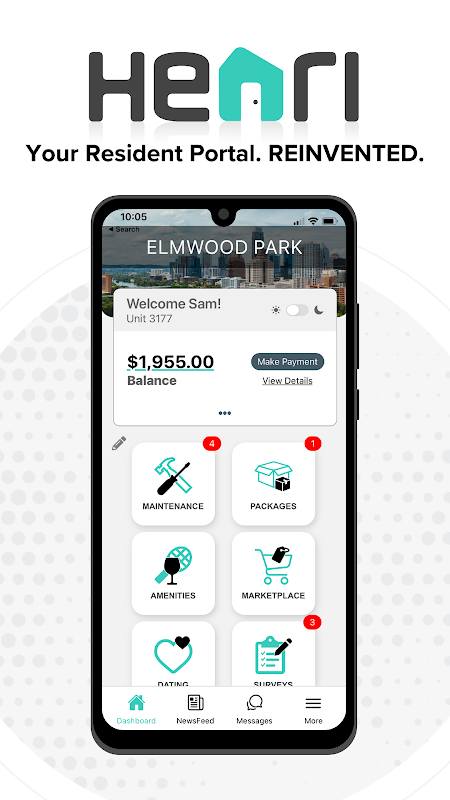 Henri is your resident portal that provides an easy way to handle all apartment community needs! Henri is here to help you communicate with your neighbors, make maintenance requests, pick up your packages, pay your rent, and more!