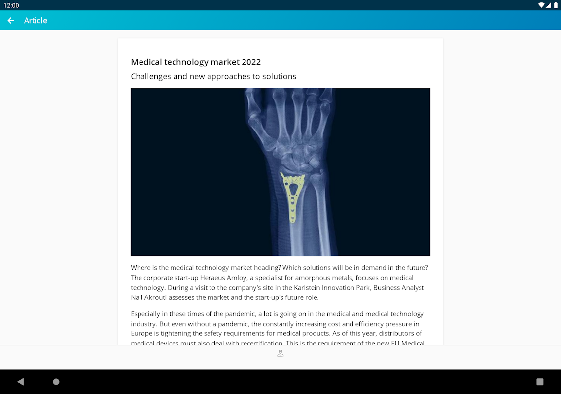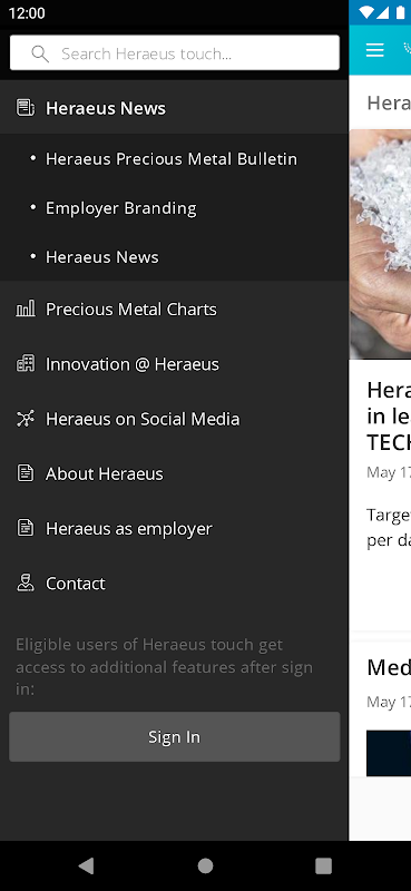 With Heraeus touch, you have access to all the news about the Heraeus Group - bundled in one app. In addition to interesting information on new products from our business units, you will also receive location information, such as availability in our parking garages, so that you are well prepared for your next visit to us.